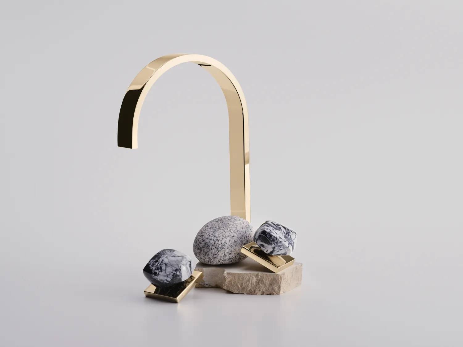 Sus líneas, modernas a la par que tradicionales, son patentes en todos y cada uno de los componentes: desde el pico, pasando por las manijas (en versión cruzada y palanca), y las rosetas cónicas.