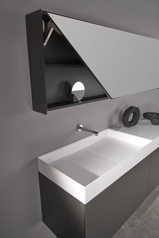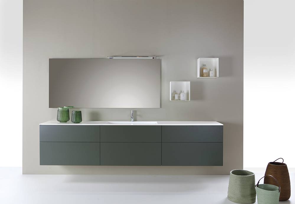 Encimeras, muebles lavabo, armarios, contenedores con ruedas o muebles espejo: todo tiene un aspecto moderno y muy elegante.