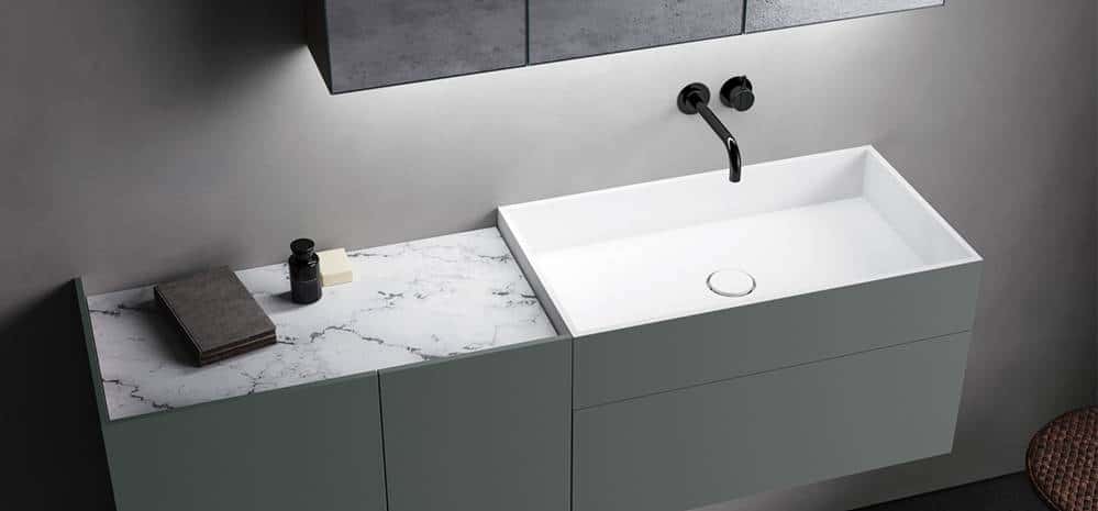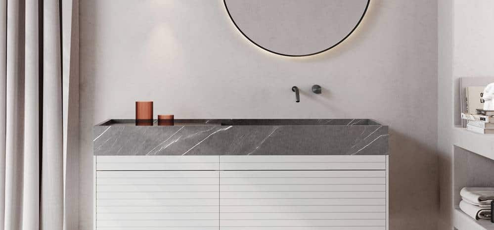Esta colección modular ofrece encimeras y lavabos completamente personalizados, elaborados a medida para adaptarse a cualquier espacio y construir distintos escenarios.