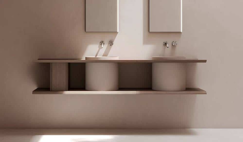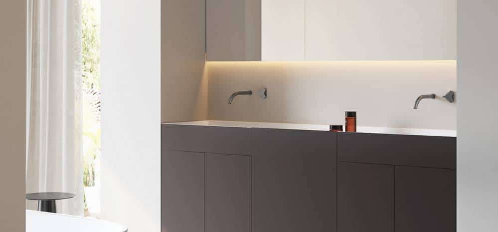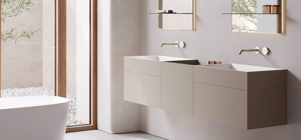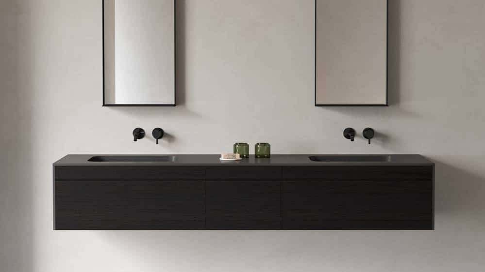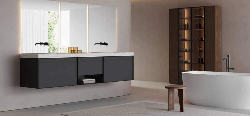 Al ser un sistema modular integral —incluyendo almacenamiento, espejos y lavabos—, facilita la coordinación estética en promociones residenciales o sector contract.