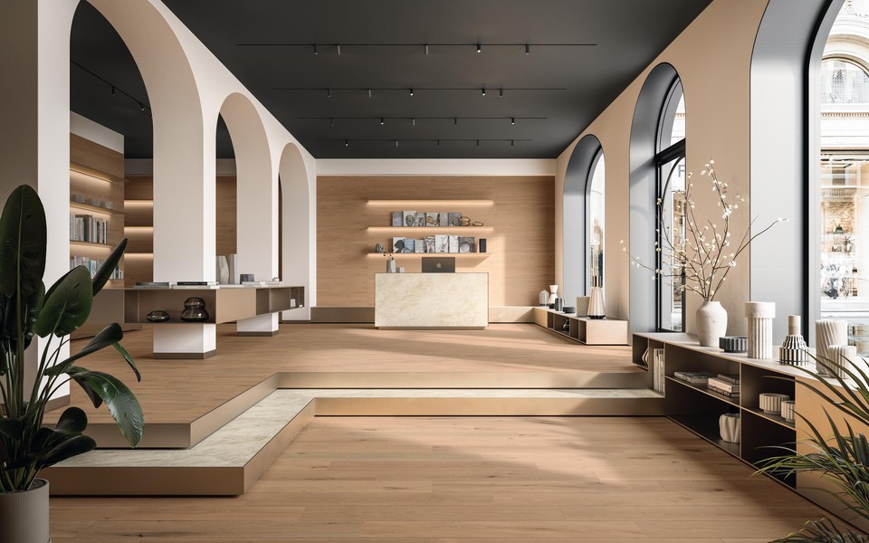 La versatilidad de los materiales y su paleta de colores -marfil, plata, camargue, gris, arena, blanco-, permite adaptarse a todo tipo de proyectos, desde residenciales hasta comerciales.