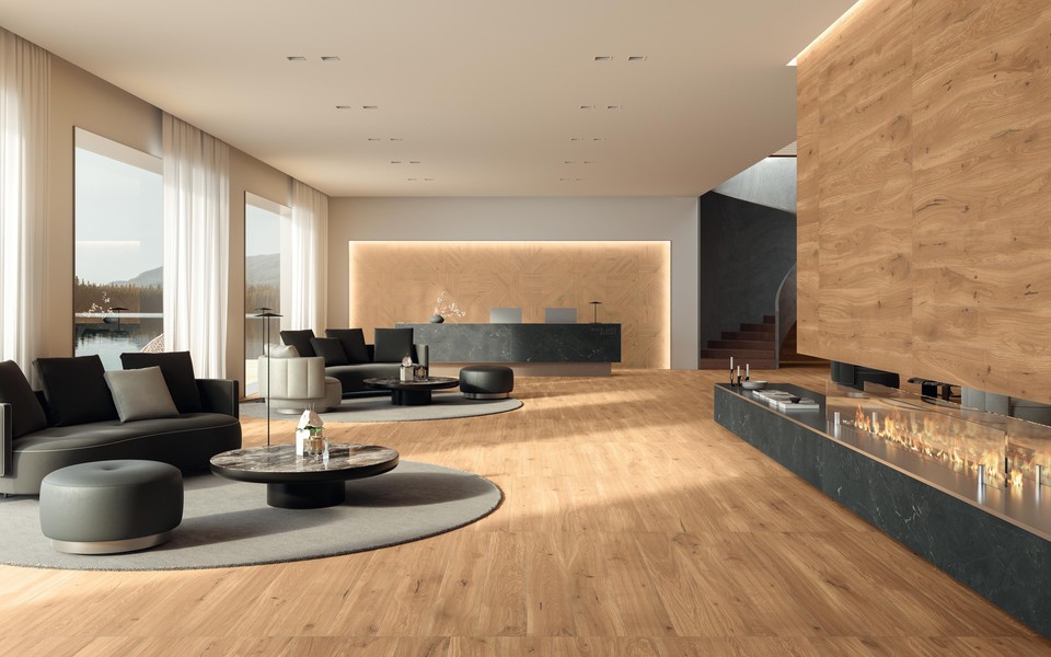 Una propuesta exclusiva que combina la calidez de la madera con la durabilidad y el bajo mantenimiento de la cerámica.